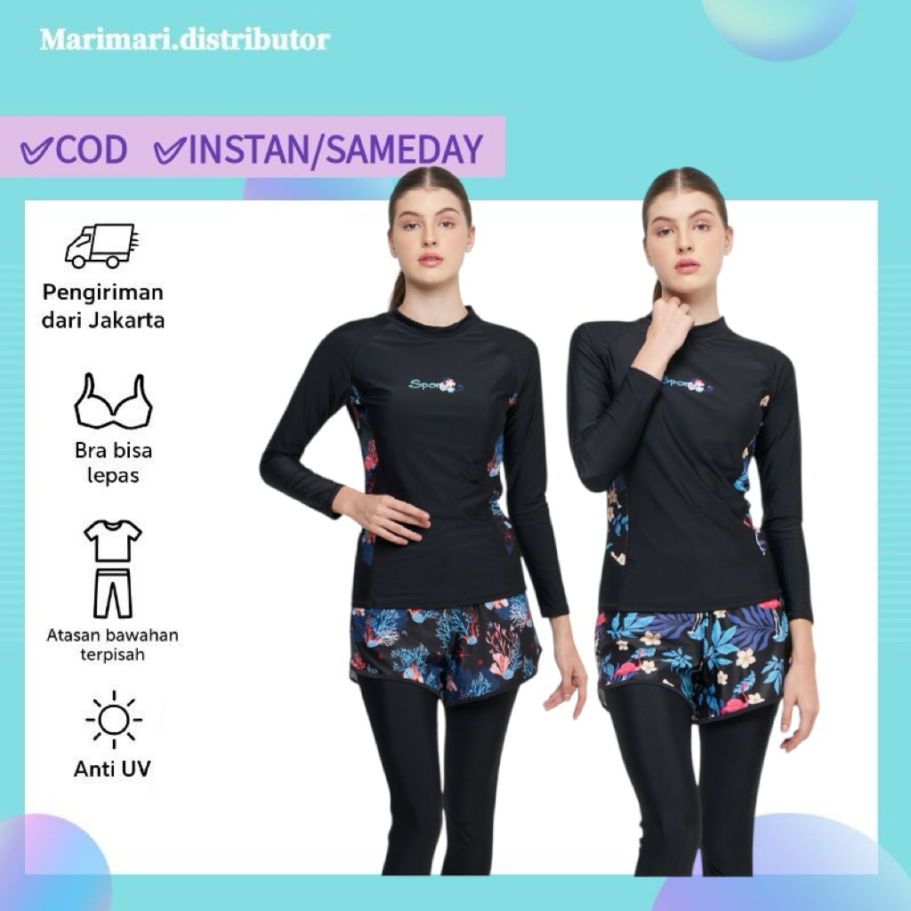 31013 Baju renang / dewasa / lengan panjang / cewek / wanita / satu set/ murah celana panjang antiuv