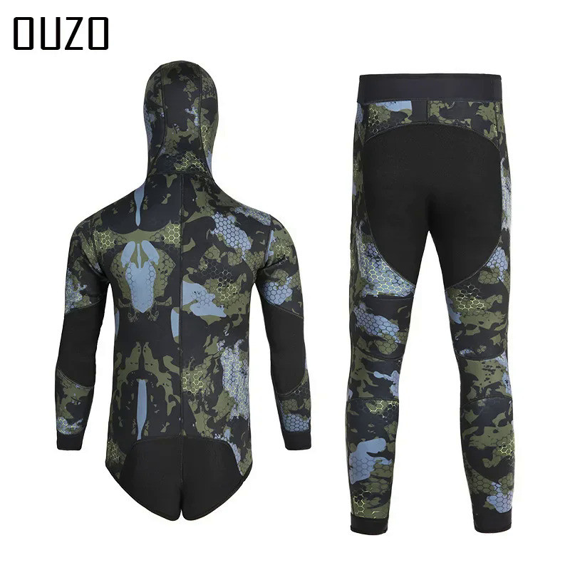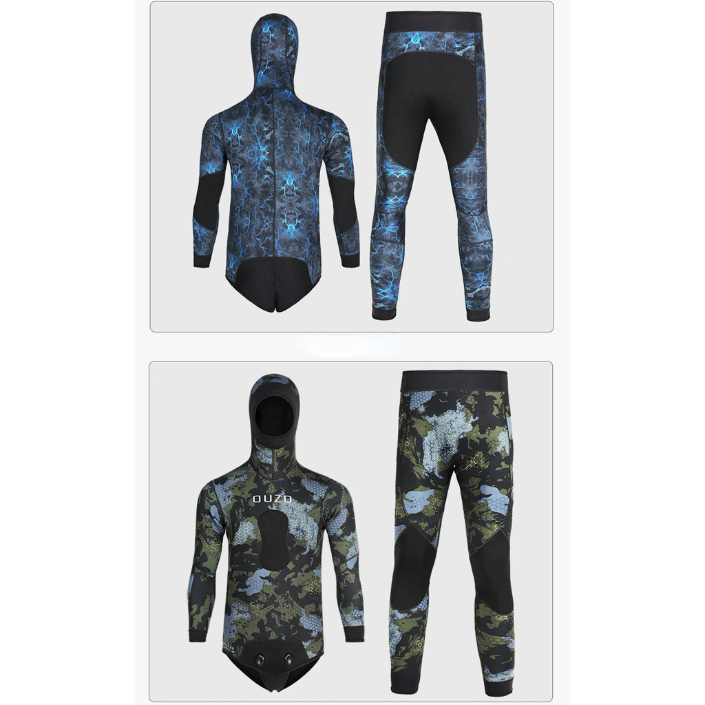 Pakaian Selam 1 5Mm Pakaian Renang Musim Dingin Tubuh Terpisah Hangat Pakaian Berburu Ikan Kamuflase Gratis Menyelam dan