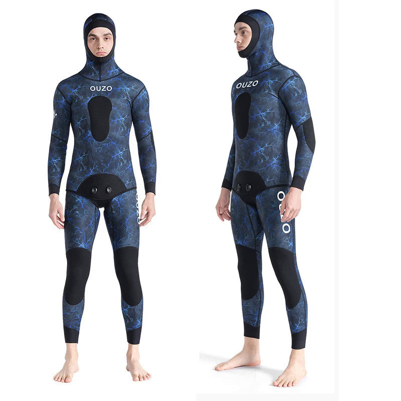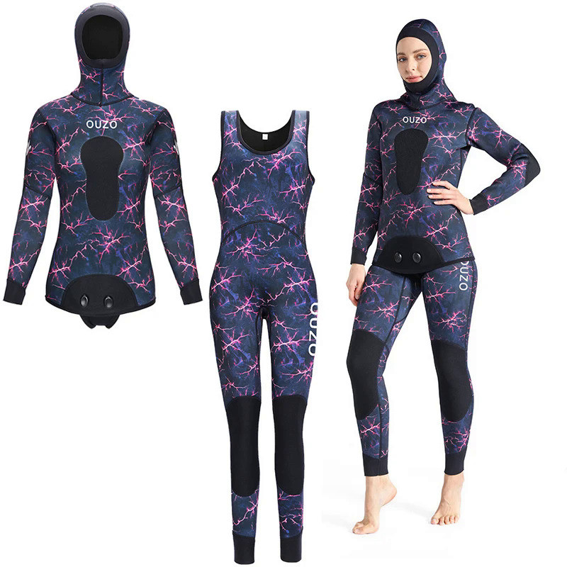 Camo Setelan Menyelam Pakaian Selam Neoprene 2 Potong Bertudung 3Mm/1 5Mm untuk Spearfishing