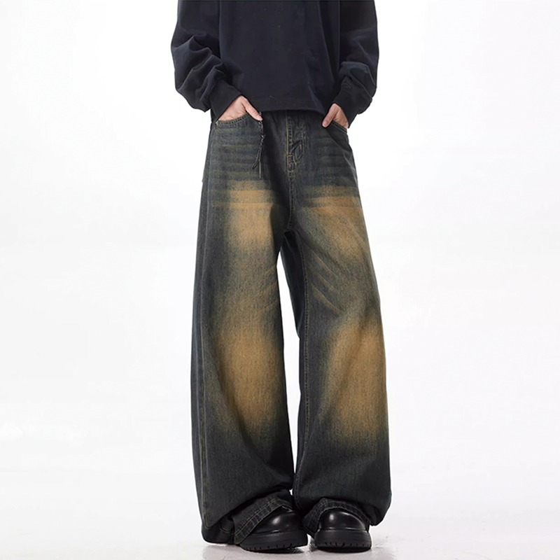 Celana Jeans Pria Retro Korean Style Baggy Pants Premium Denim Panjang Gombrong Casual Fashion Jens