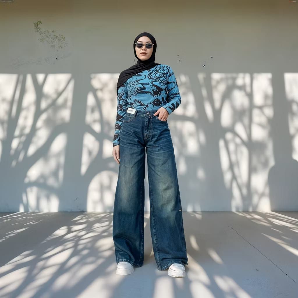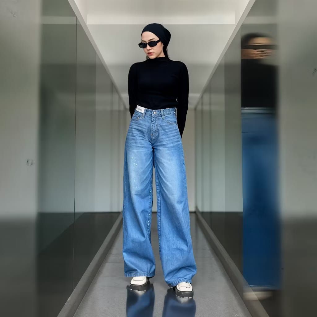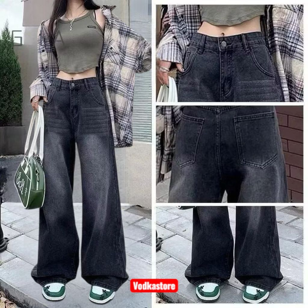 vsStore Baggy Jeans Celana Jeans Wanita Beggy pants Hitam Retro Terbaru Celana Baggy Jeans Retro Gombrong Reguler Loose