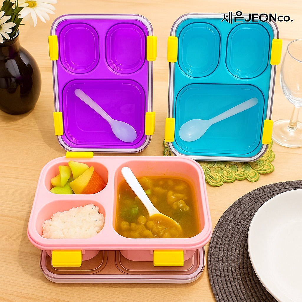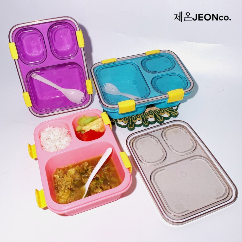 LUNCH BOX 3 sekat Kotak Makan Tutup Transparant Lunchbox Tahan Panas Free Sendok Food Grade Murah Gratis Ongkir