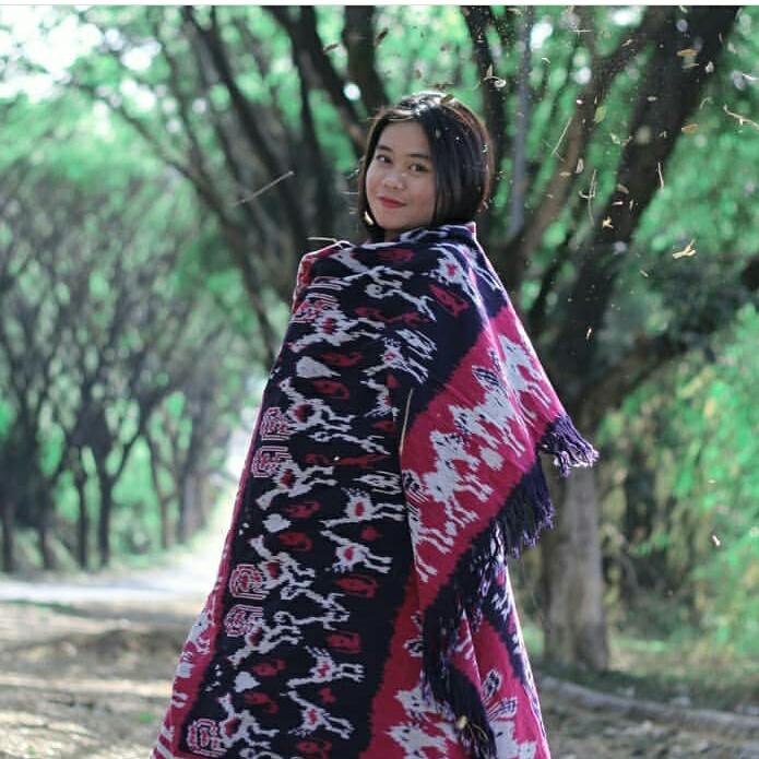 KAIN TENUN BLANGKET HALUS MOTIF AYAM SUMBA KUNING - BIRU