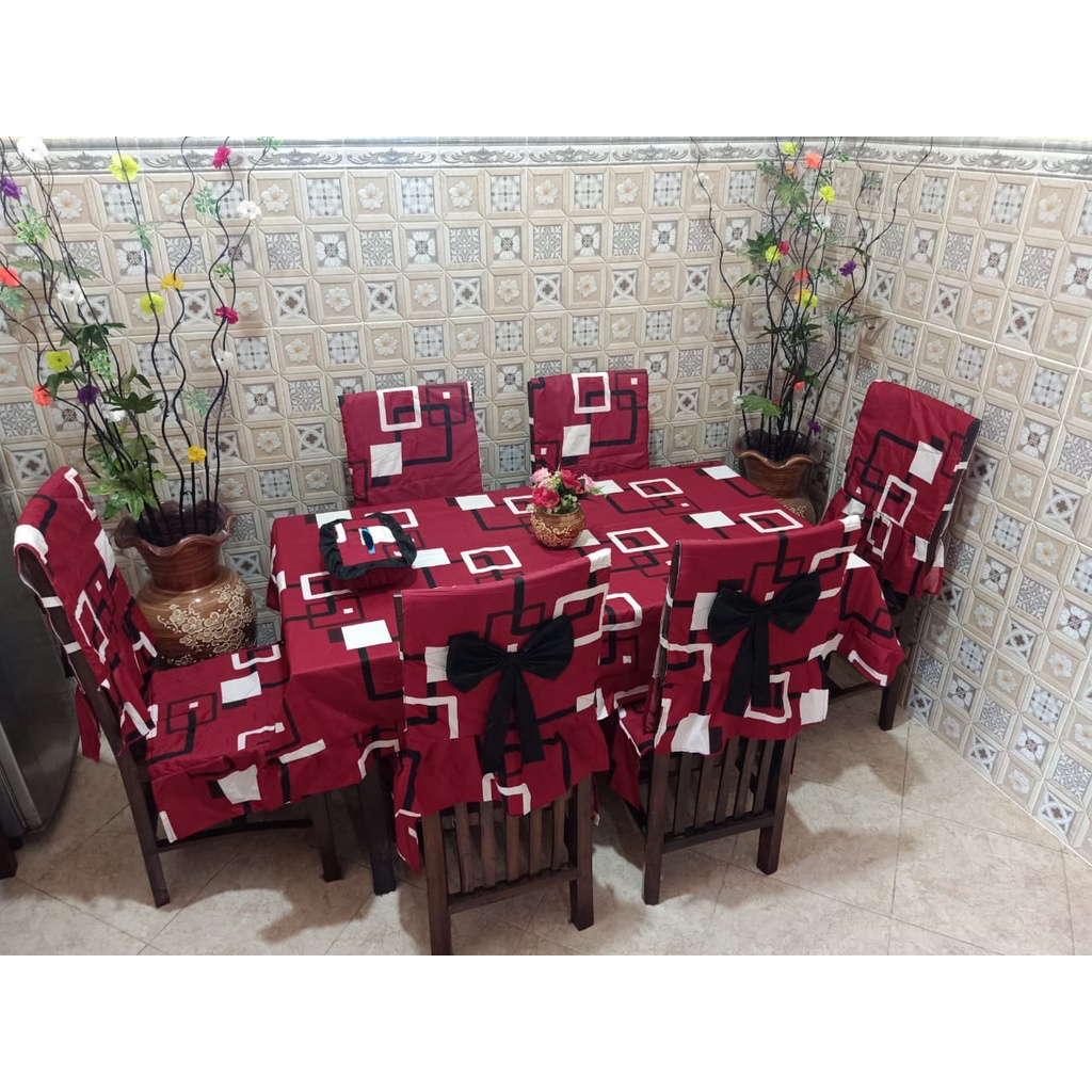 Sarung Kursi 6 Set Katun Dengan Taplak Meja
