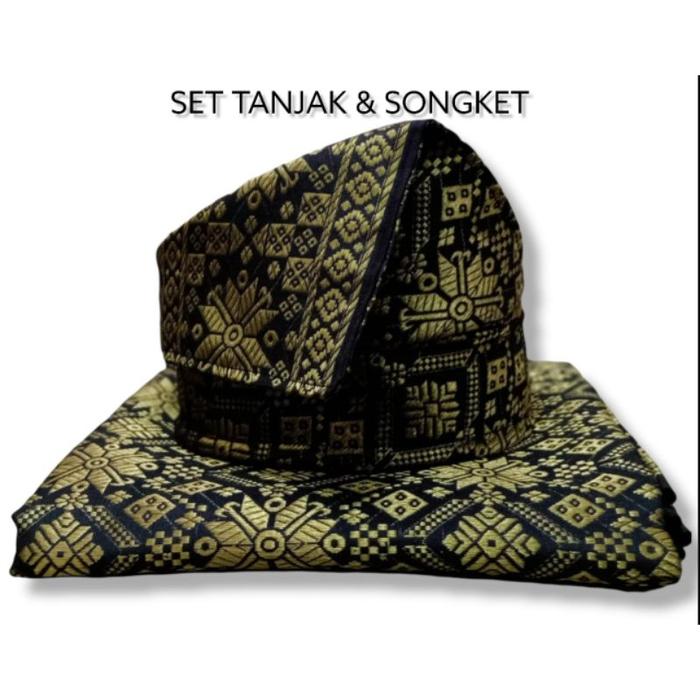 SET TANJAK DAN KAIN SONGKET KHAS MELAYU KUALITAS PREMIUM BUDAK MELAYU RIAU SARUNG - BIRU DENDAM