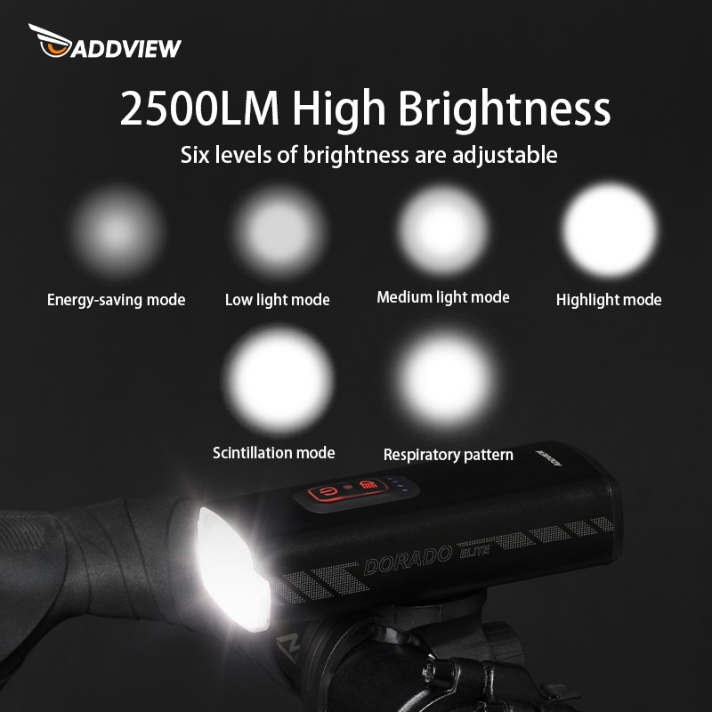ADDVIEW Bicycle Light, Super Bright Front Light, Waterproof Flashlight 2500 Lumens, USB Rechargeable