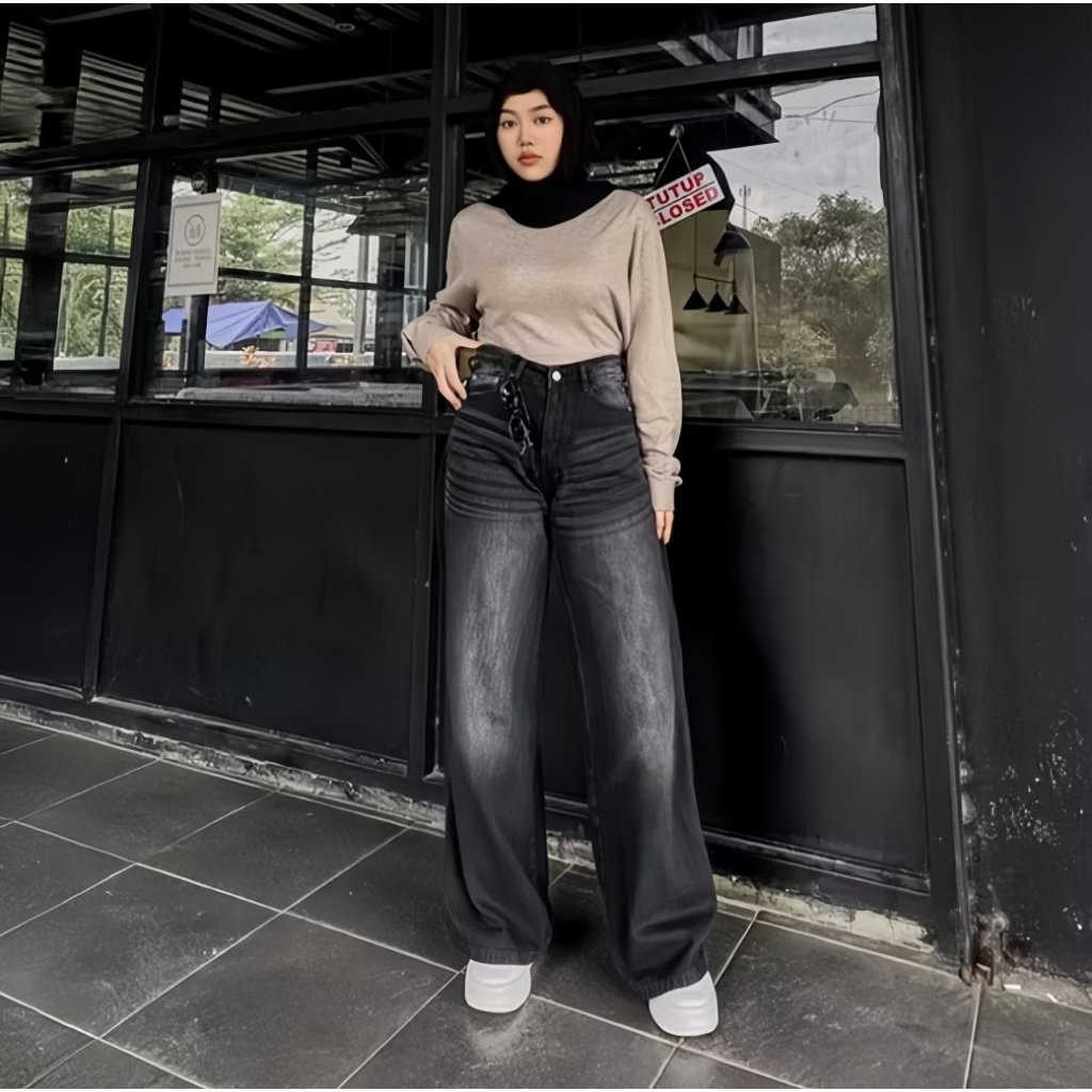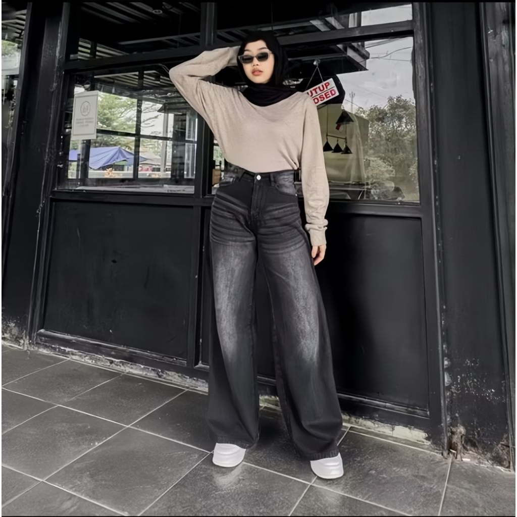 Celana Jeans Whisker Baggy Pants Hangover Oversize Wid Leg Skena Korean Style Terlaris Murah Gratis Ongkir