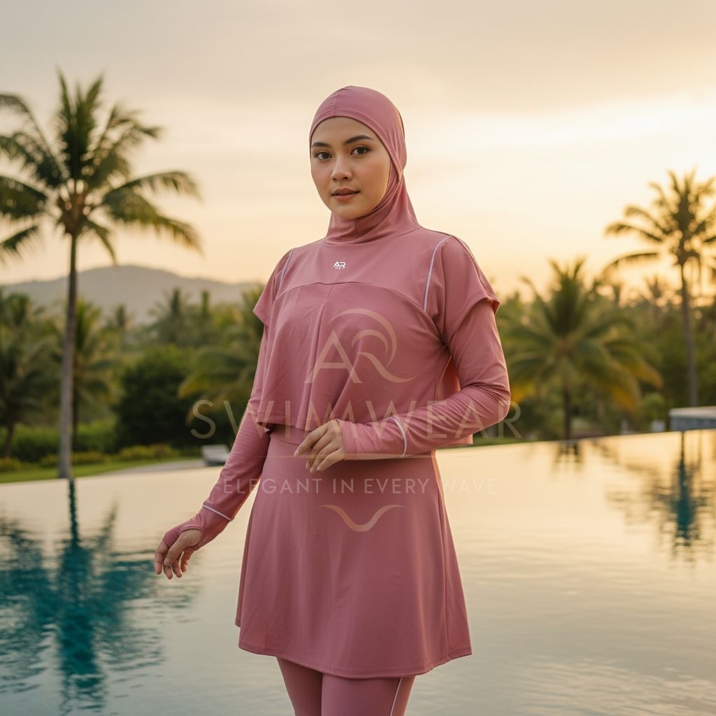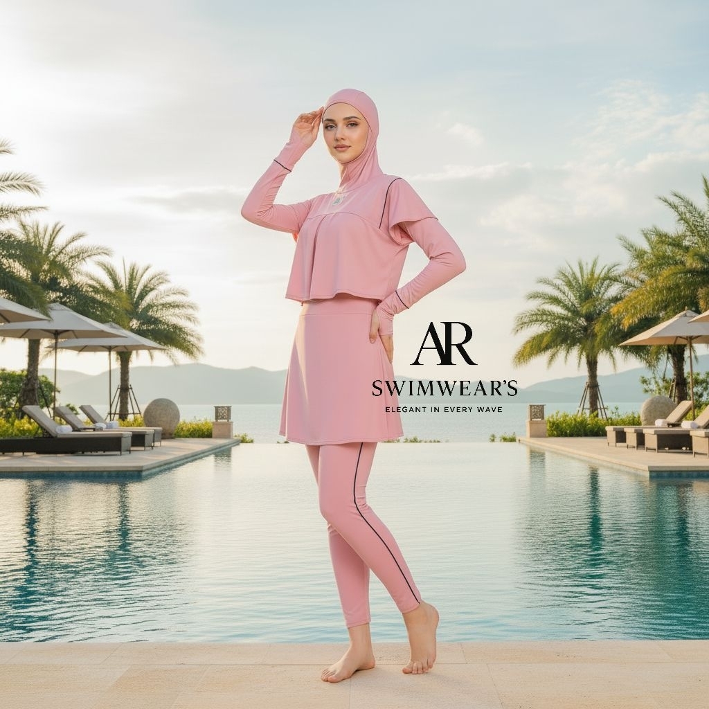 AR aveline swimwear baju renang wanita muslimah (Hijab bolero )dilapisi CUP bra/Baju renang muslimah# terlaris