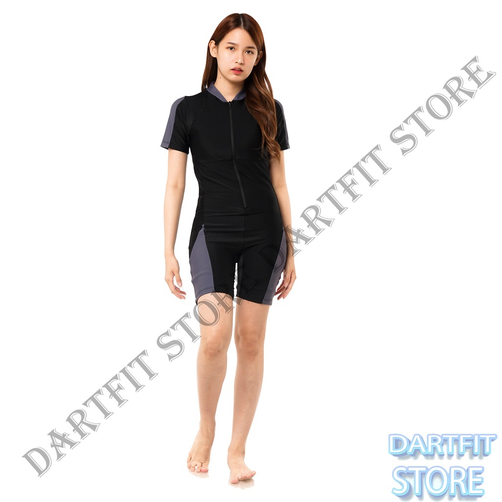 Baju renang tangan pendek diving dewasa UNISEX Cewe Cowok lis warna biasa dan lapis cup bra