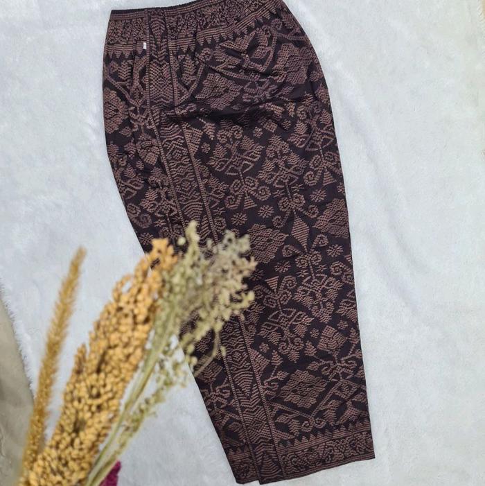 SONGKET BORDIR ANJANI PREMIUM / BAWAHAN BORDIR / KAMEN BALI ELEGAN - COKLAT PRAMUKA, M
