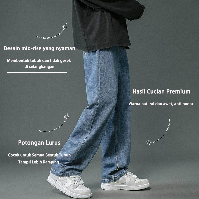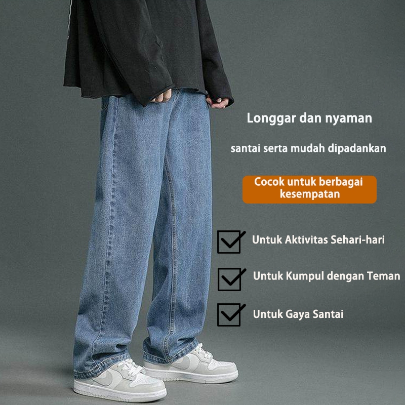 Celana Jeans Pria Korean Style Baggy Pants Boyfriend Jeans Celana Panjang Pria Loose Pants