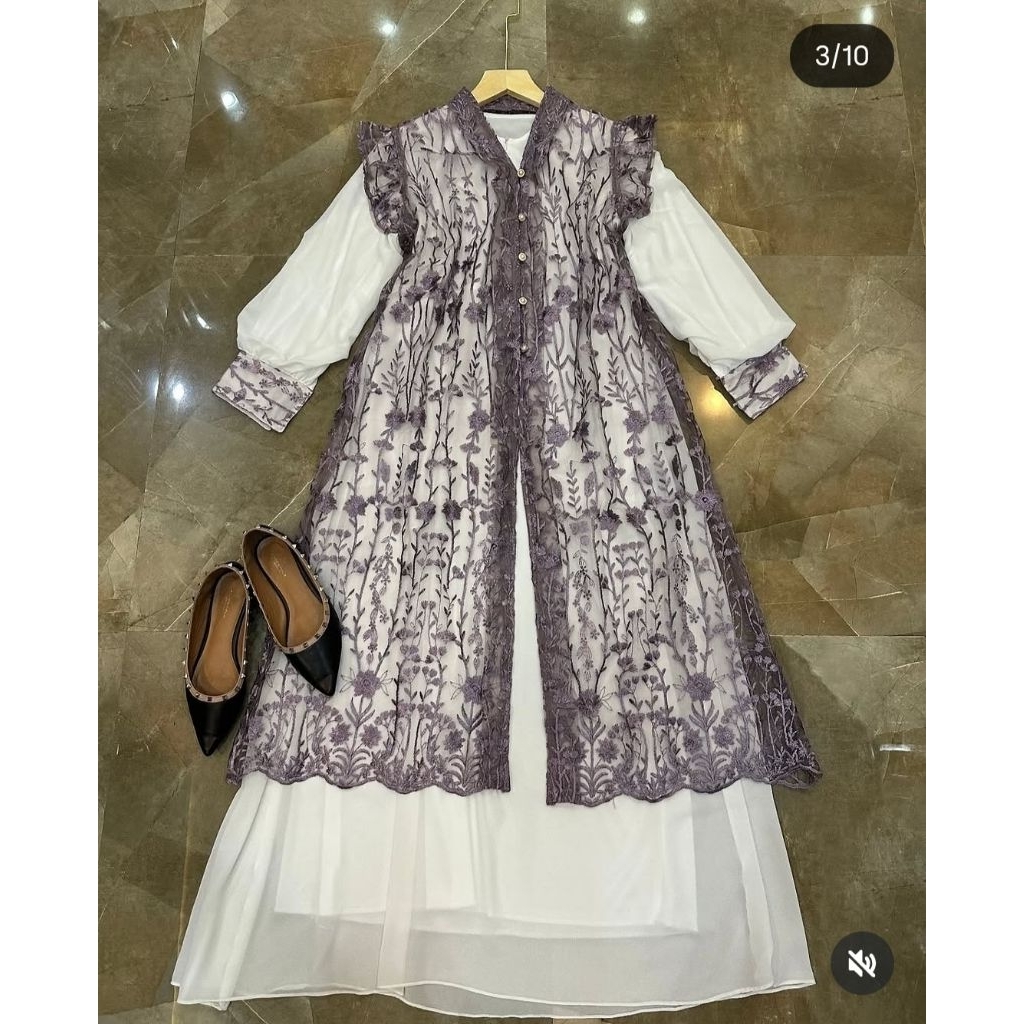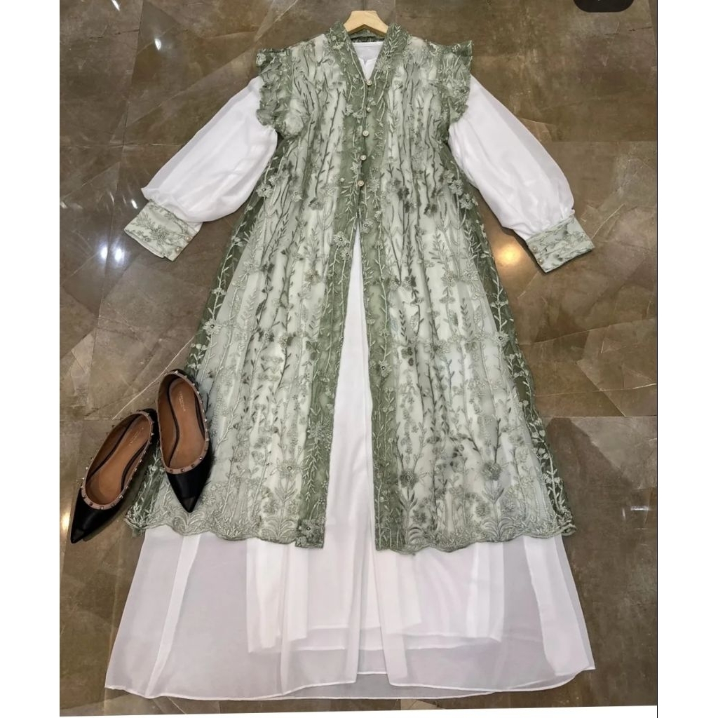 gamis anak mewah ceruty baby doll mix outer brokat lebaran pesta Luna dress usia 10-15 tahun