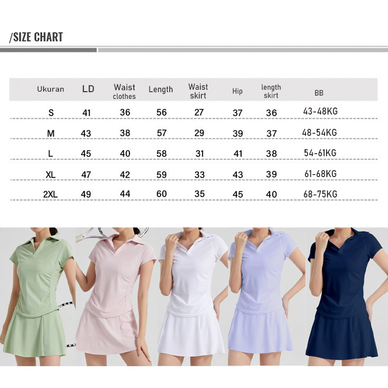 Set Olahraga Wanita Crop Kerah Bernapas Premium/ Set Tenis / Set Badminton Cepat kering dan bernapas