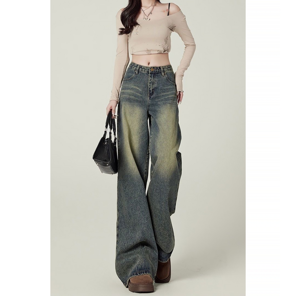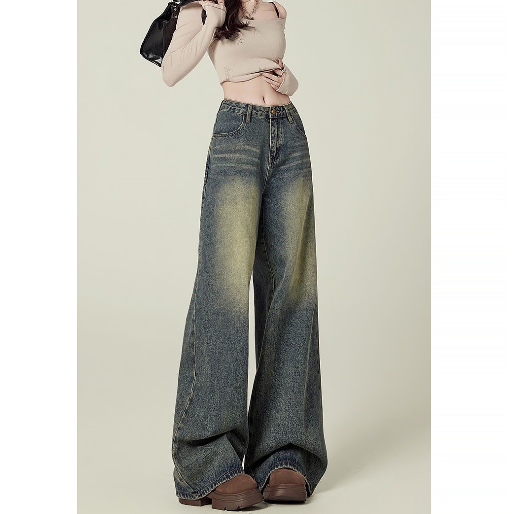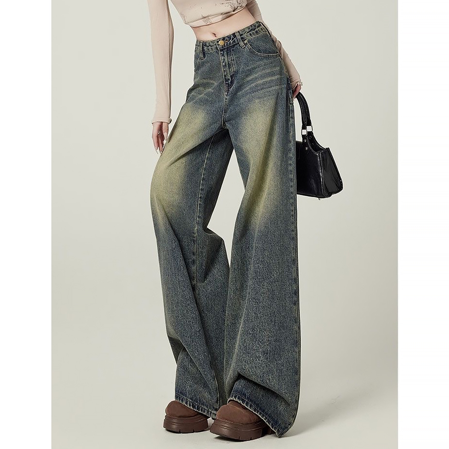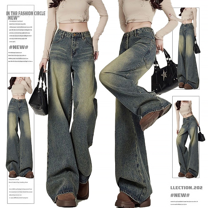 Keygirl Retro Kuot Highwaist Celana Panjang Wanita baggy Wide Leg jeans premium Murah Gratis Ongkir