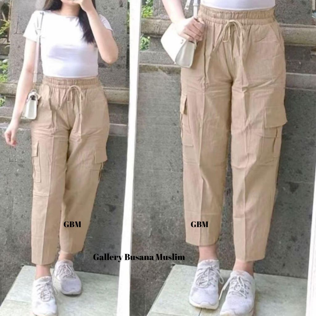 Celana Kulot Wanita 7/9 Cargo Kekinian Bahan Linen Cringkel Premium Nyaman Dipakai Panjang Standar Baggy Terbaru Murah G