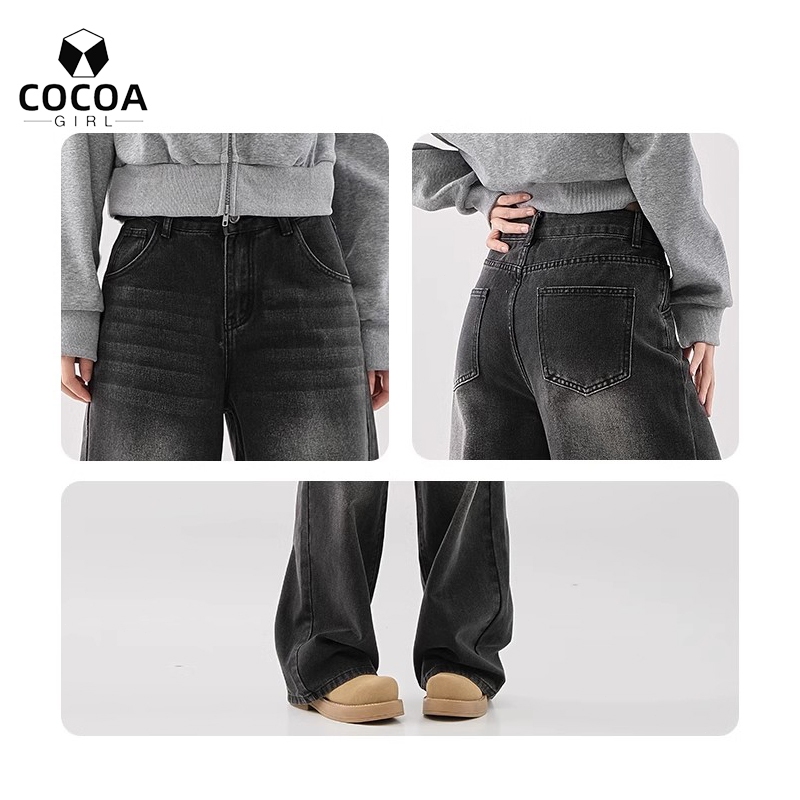 Cocoa Girl Celana Jeans Wanita Hitam Celana Panjang Wanita Korea Style Celana Jeans Wanita Murah Celana Baggy Pants Wani
