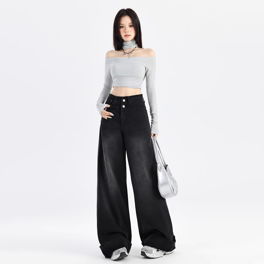 Loyka Celana Highwaist Celana Hitam Panjang Wanita Celana Baggy Pants Celana Kulot Jeans Wanita OOTD / Baggy Jeans Wanit