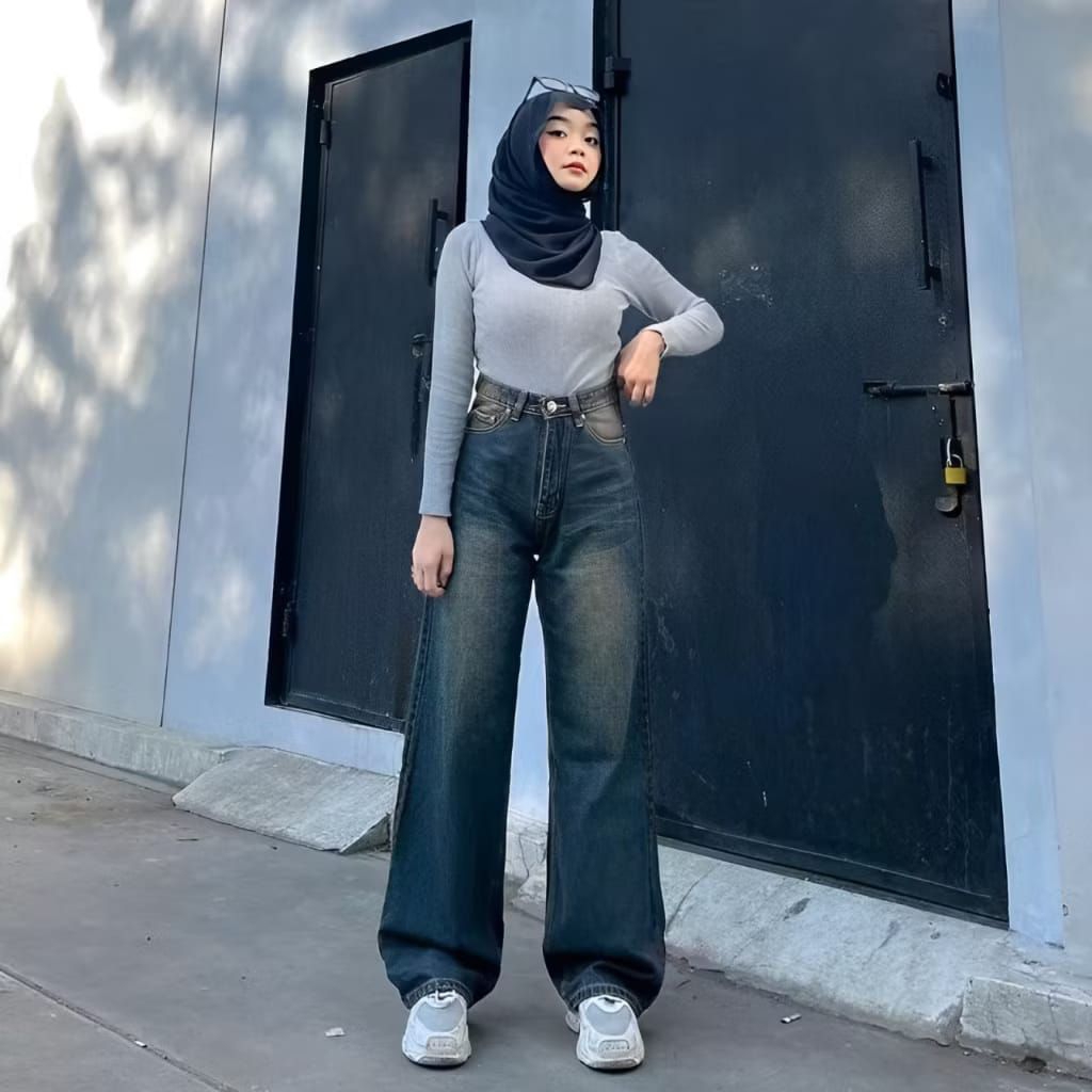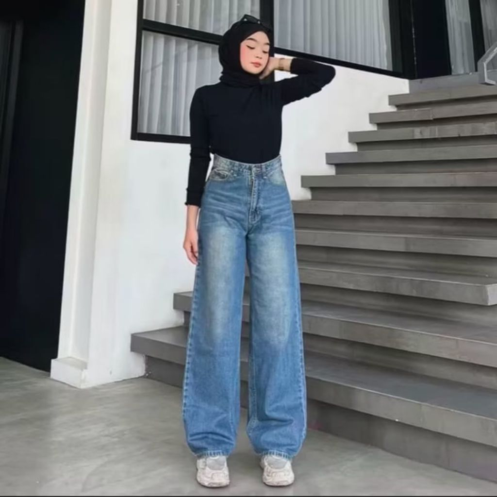 Vstore Celana Jeans Kulot Highwaist Wanita Korean Style Baggy Loose Wide Lag Kekinian Murah Gratis Ongkir