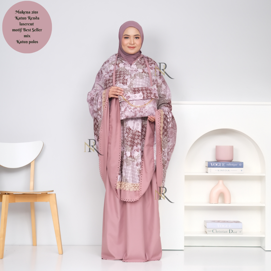 Nai-Rhu-Mukena Dewasa 2in1 Katun Renda Motif Printing Terlaris Mix Polos Laser cut KanayaSeries