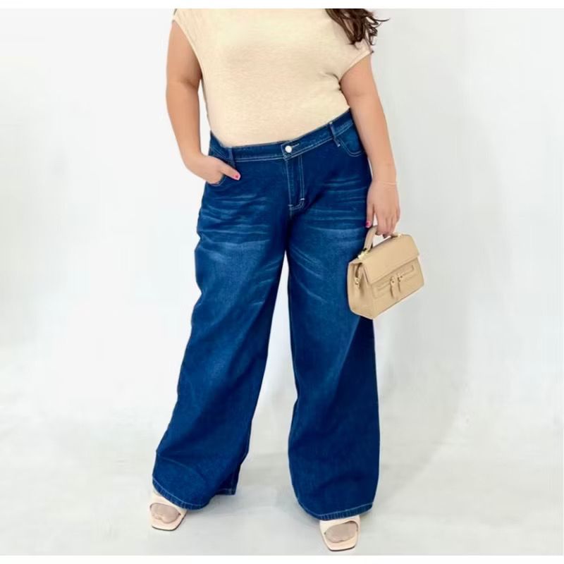 CELANA LOOSE WANITA HIGHWAIST BAGGY JEANS BIG SIZE JUMBO MUAT 100 KG MODEL KOREA TERBARU Murah Gratis Ongkir