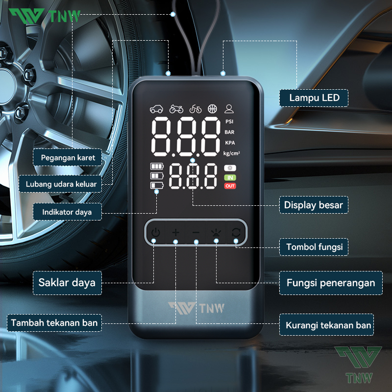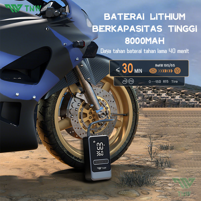 TNW CI10 Pro Car Air Pump Tire Inflator Portable Pompa Ban Mobil dan Motor Mini Pompa Angin Elektrik 8000mAh