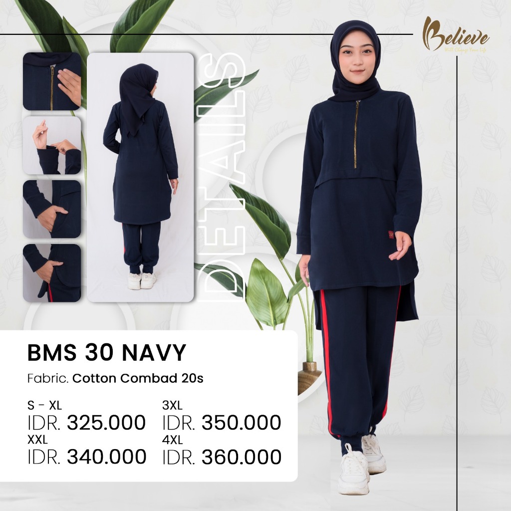 BELIEVE Hijab Sport Wears BMS 30 - Setelan Baju Olahraga Muslimah