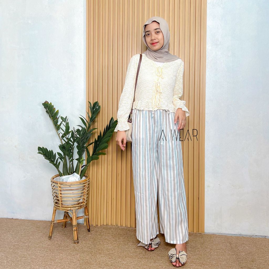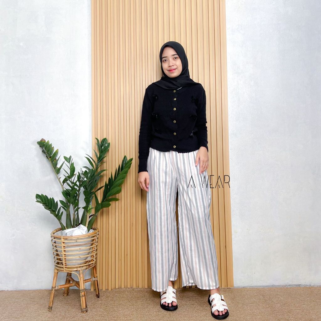 A Wear Relax Pants Stripe Every Celana Panjang Wanita Baggy Katun Salur Murah Gratis Ongkir