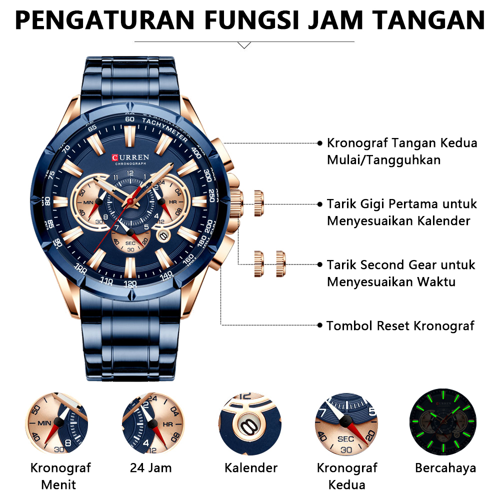 Curren Jam Tangan Pria Mewah Teratas Merek Kuarsa Fashion Baja Penuh Olahraga Tahan Air Pria Jam Tangan Pria Kasual Tang