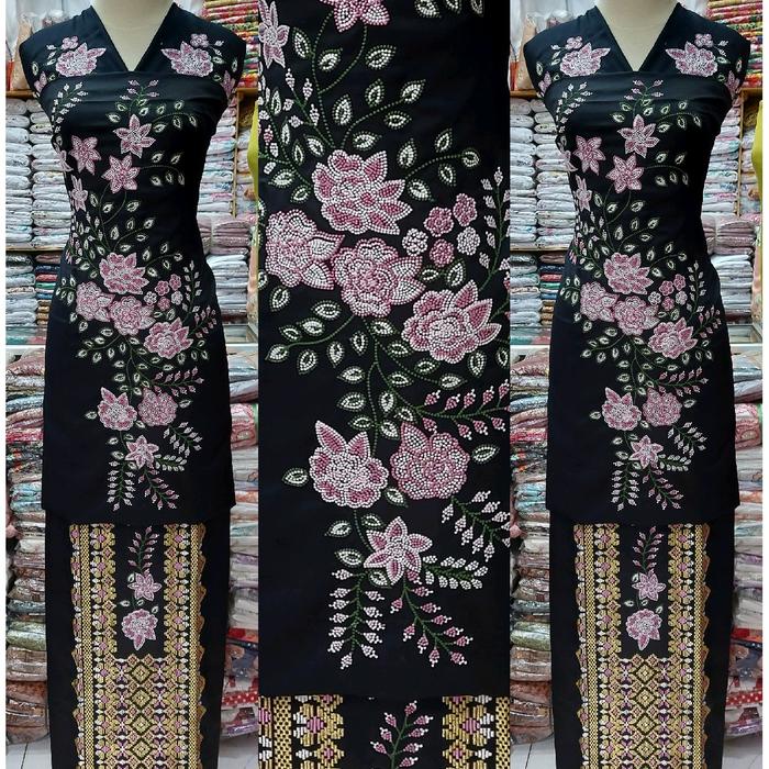 BAKAL BAJU KURUNG SONGKET KAPALO SAMEK KHAS BUKITTINGGI PADANG - NAVY, 3MTR X 1,50 MTR