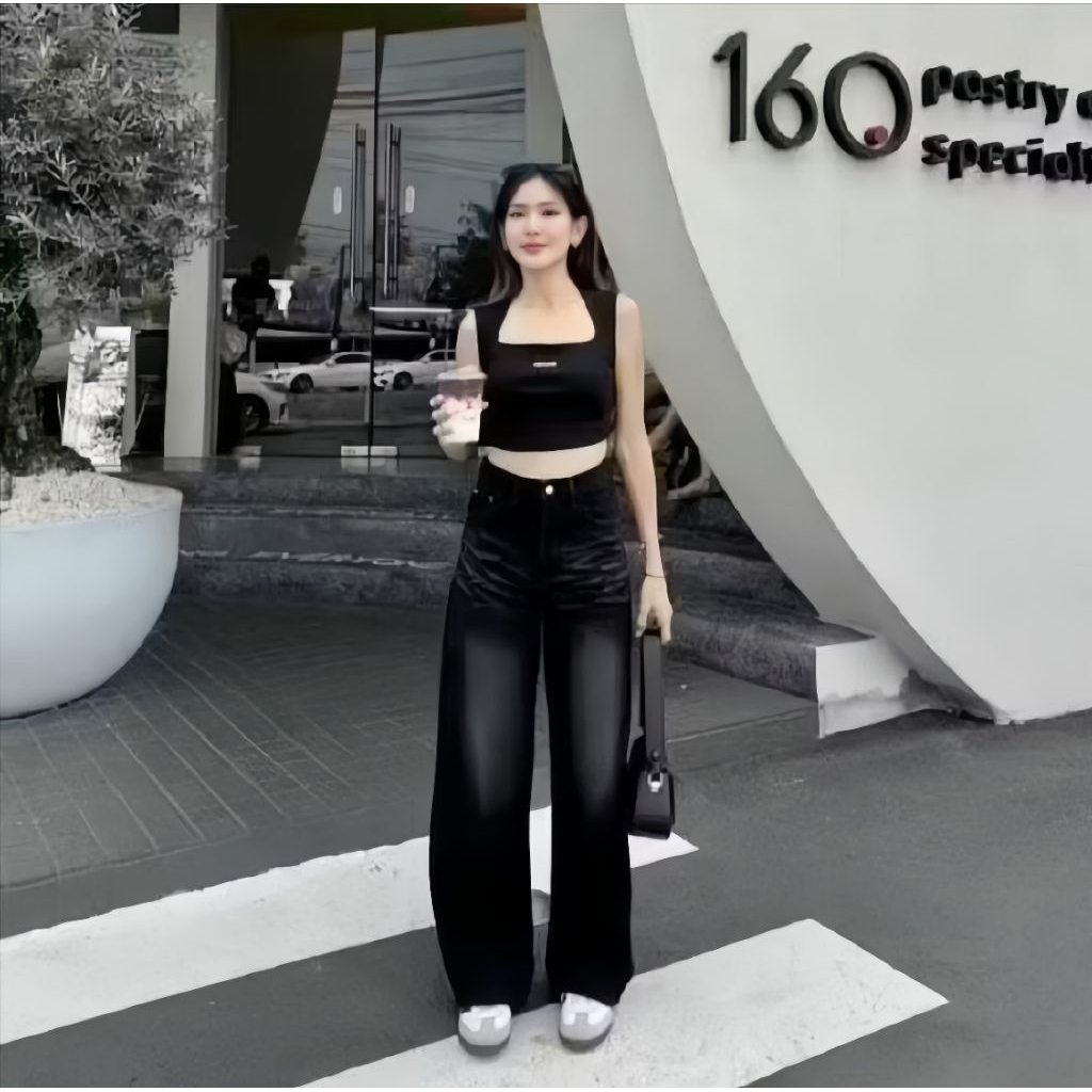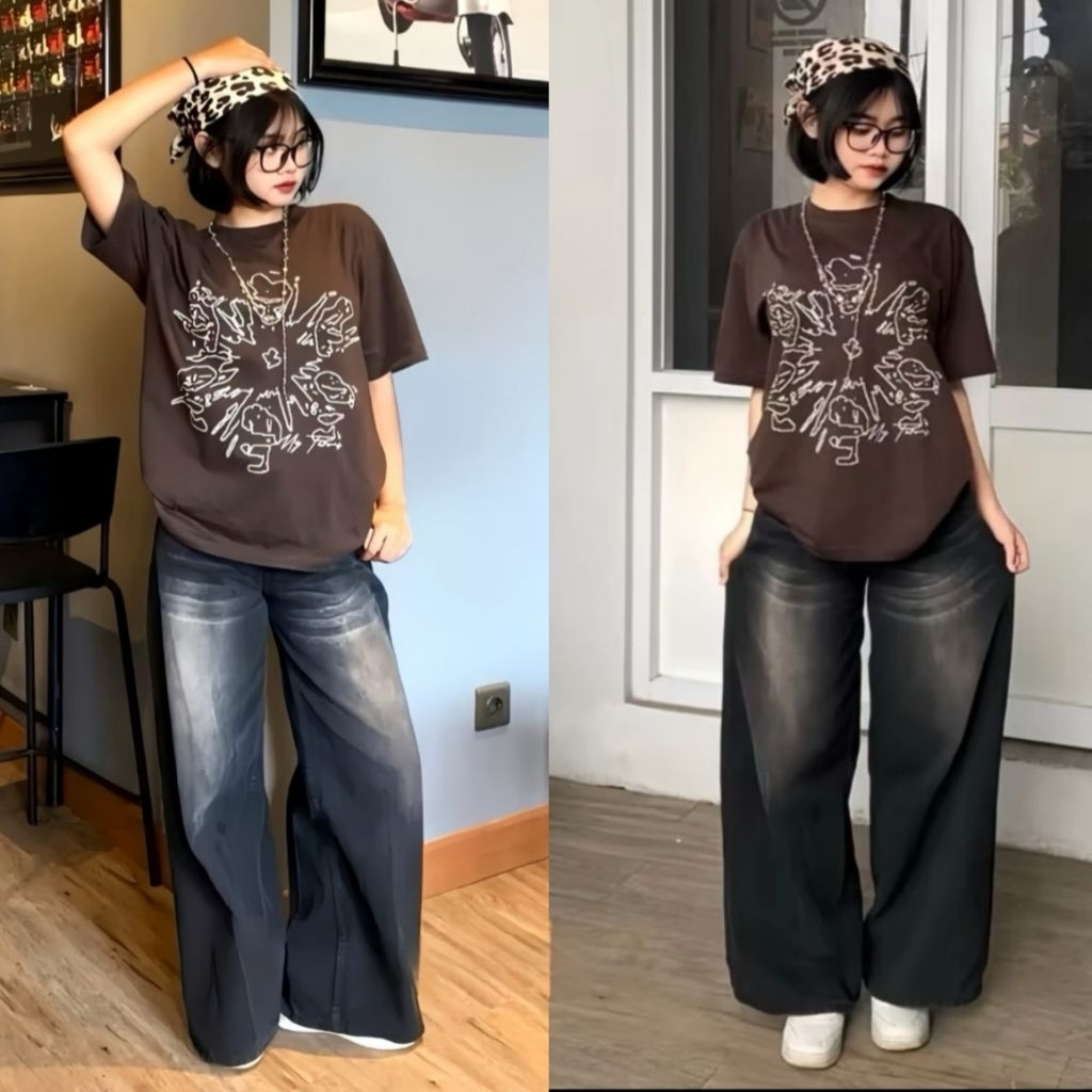 Highwaist Celana Jeans Baggy Whisker Celana Jeans Baggy Pants Wid Leg Hangover Oversize Korean Style Terlaris Murah Grat