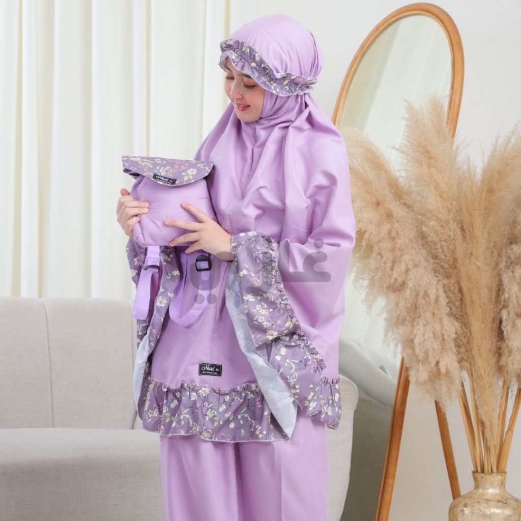 ALGHAZI - Mukena Anak Katun Tas Ransel + Sejadah 2in1 Resleting Premium Adilla Series