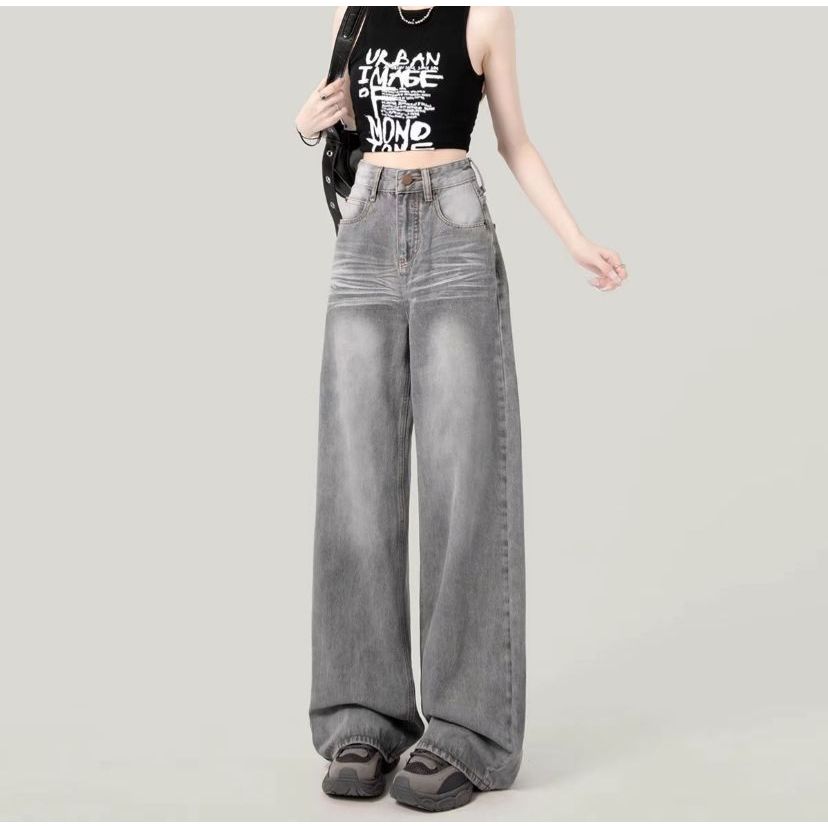 UNISEX Higwaist Baggy Jeans straight Pants Loose Jeans Wanita Panjang Korean Kulot Jeans Wanita Celana Jeans Wanita Mura