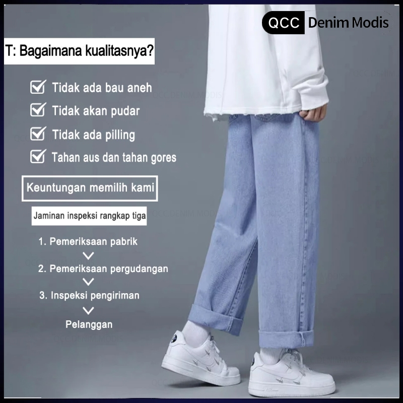 Celana Jeans Pria Loose Pants Baggy Korean Style Basic Reguler Fit Celana Jeans Gombrang Oversize