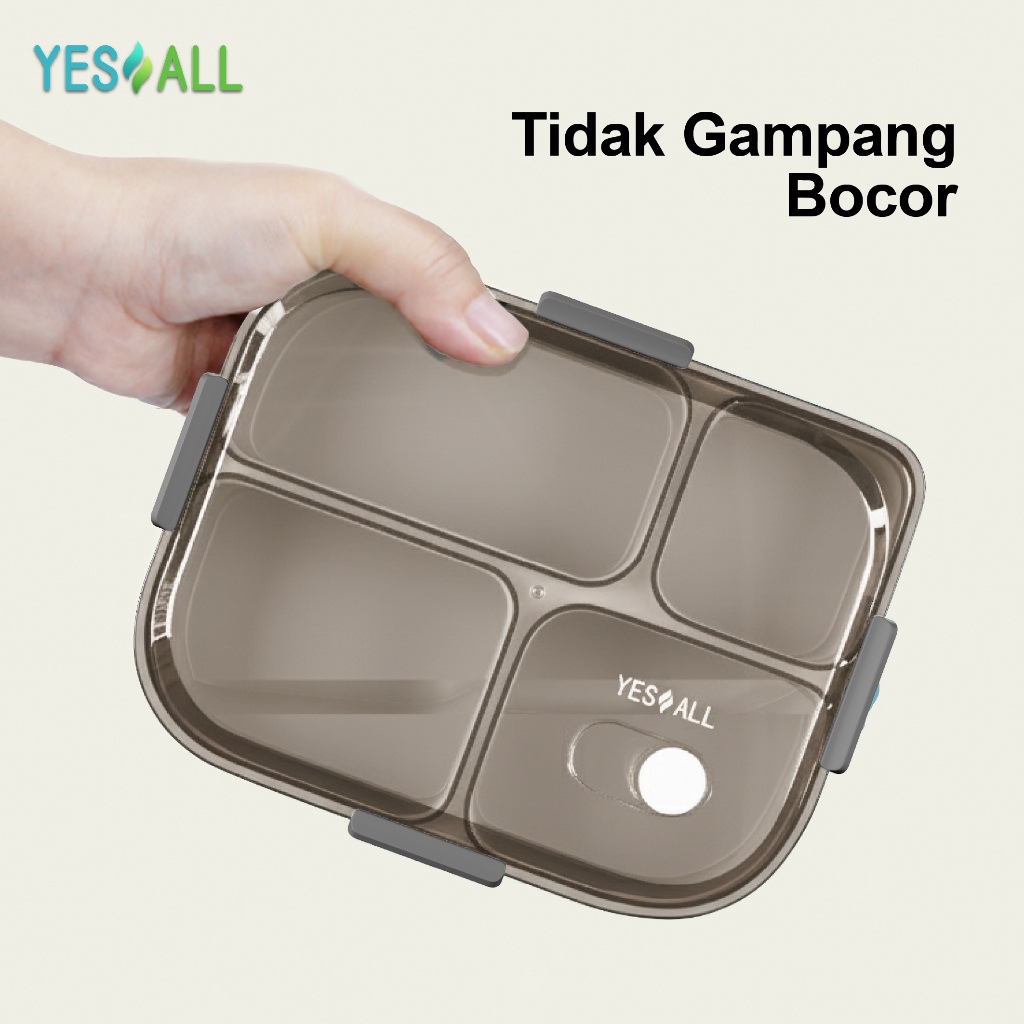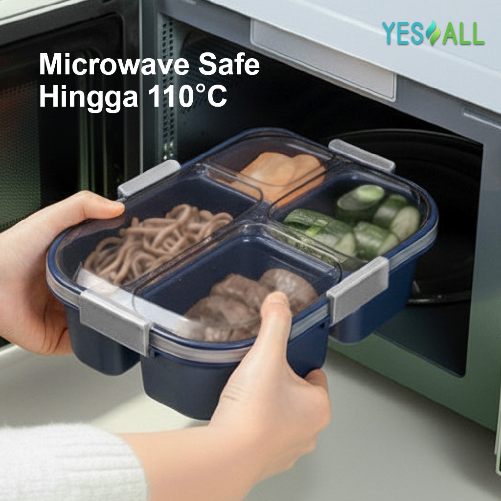 YESALL Lunch Box 1200ml Kotak Makan Bento 4 Sekat Estetik Korea Sehat Tempat Bekal Makanan Anti Bocor – Teal Blue / Gree