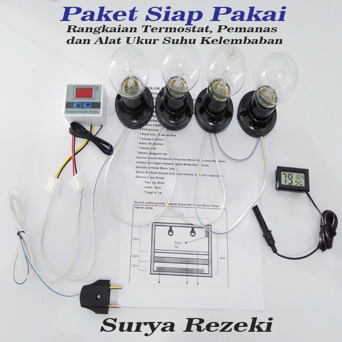 Paket mesin tetas telur otomatis / mesin penetas telur otomatis Siap Pakai Thermostat XH Termostat Pemanas Thermo-Hygrometer