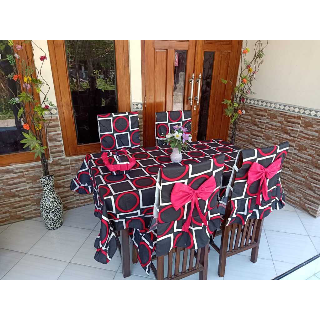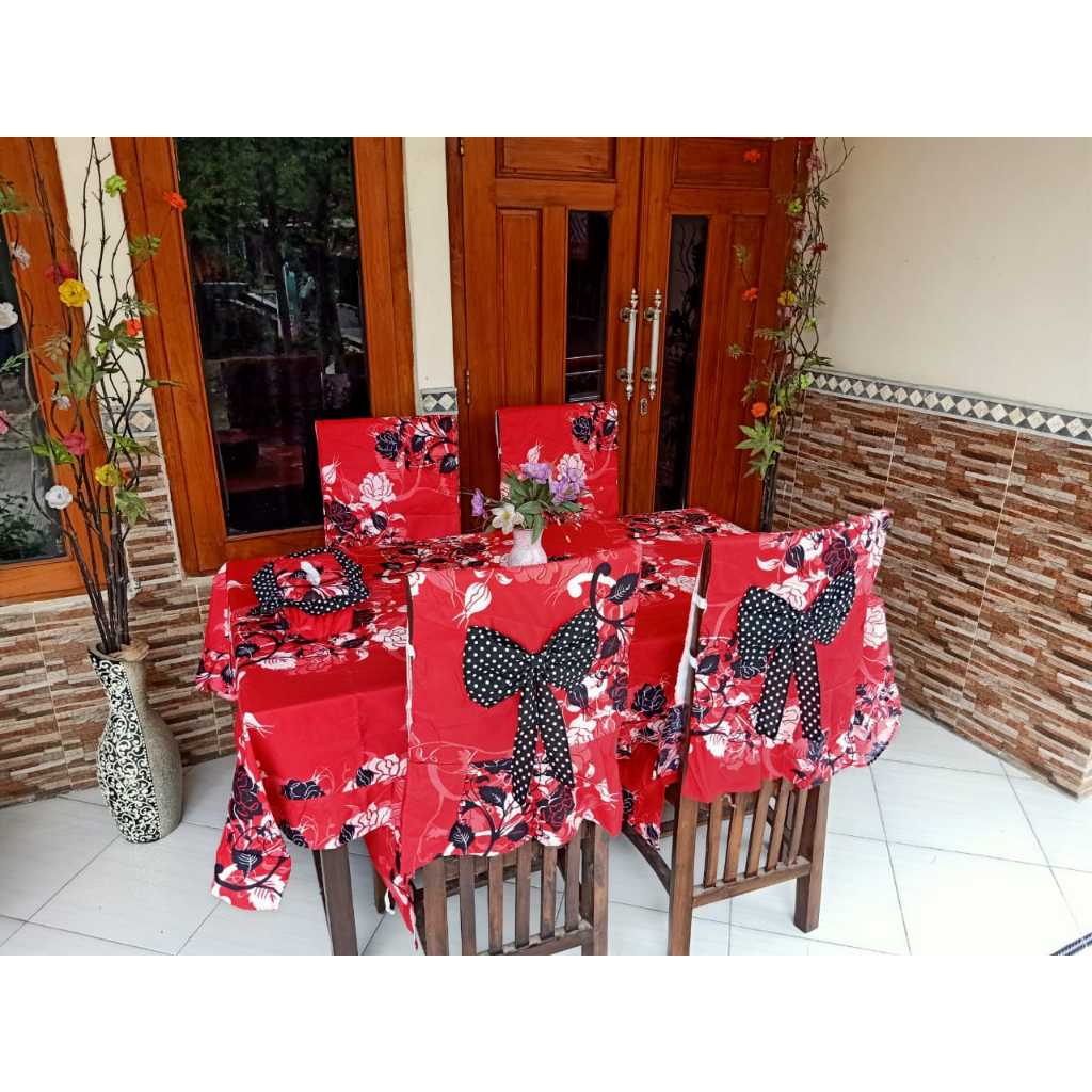 SALE SARUNG SANDARAN KURSI 4 dan 6 + TAPLAK MEJA MAKAN MURAH /1 SET LENGKAP DAN KITCHEN SET MOTIF BANYAK PILIHAN LIMITED EDITION PALING MURAH