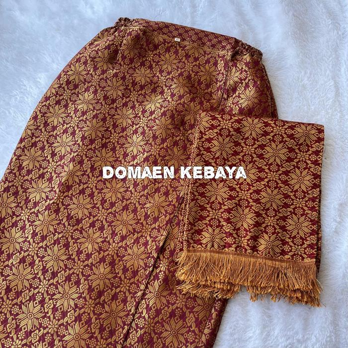 (SET) ROK SONGKET SPAN DAN SELENDANG SONGKET KAIN BENANG - SET (MARUN SILVER & SELENDANG), S