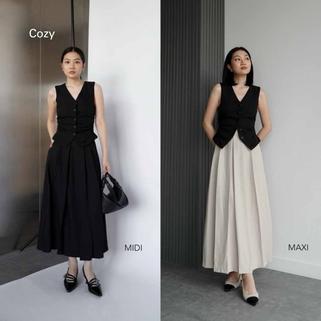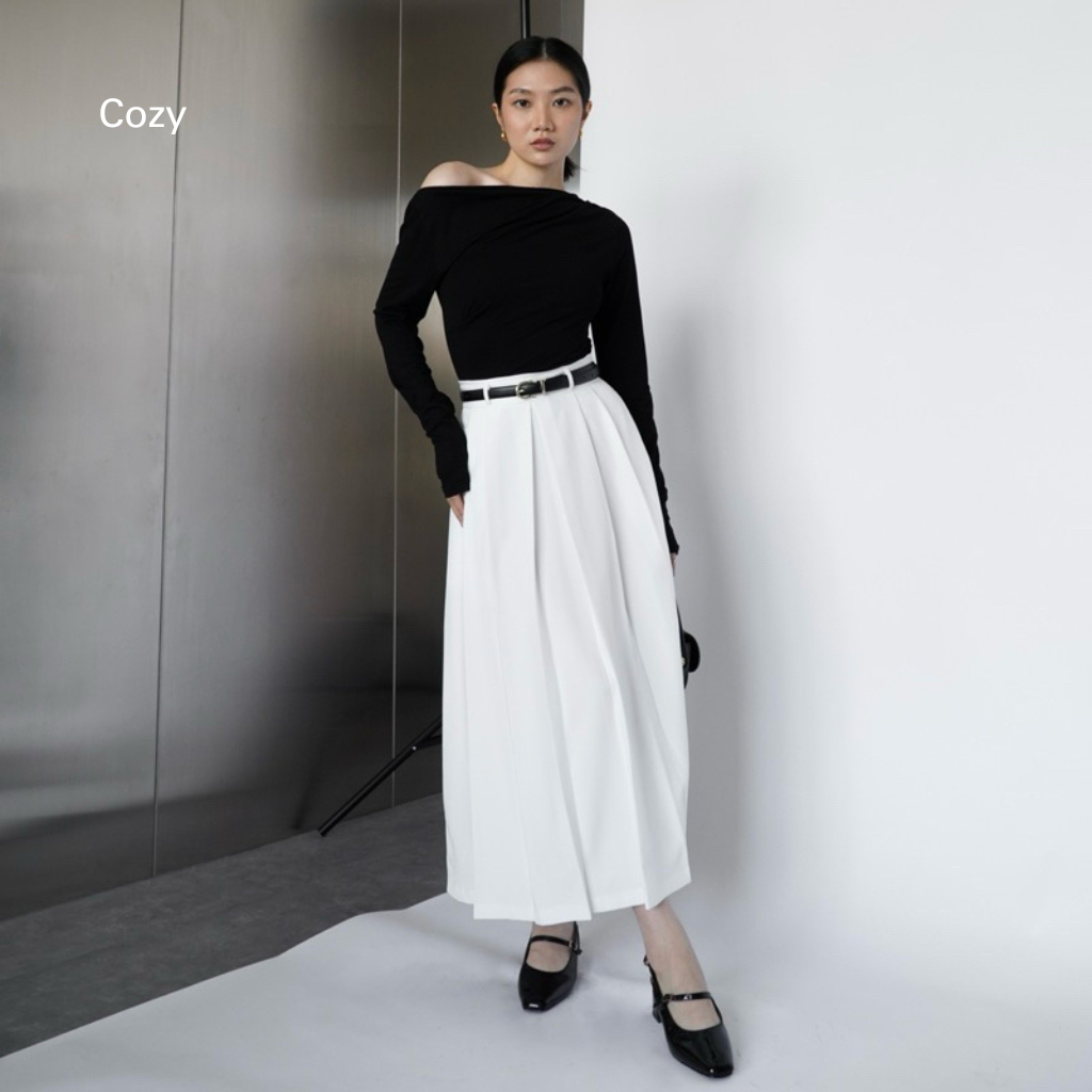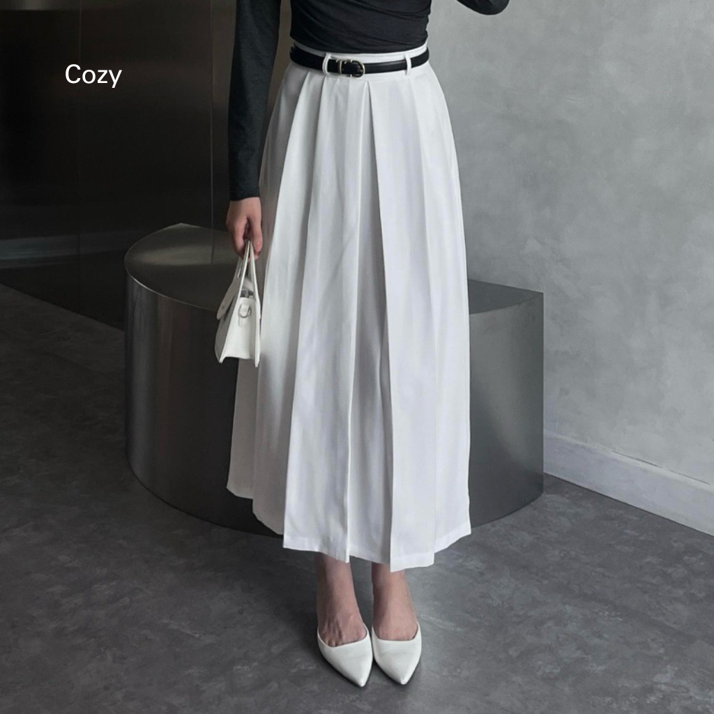 Cozy - Rok Wanita Putih Panjang Midi Skirt Rok Kerja Wanita Terbaru Kekinian Flare Skirt Highwaist