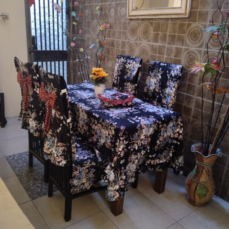 SARUNG DINING SET 4 KURSI + TAPLAK MEJA MAKAN UK 120200 CM SABBY CHIK