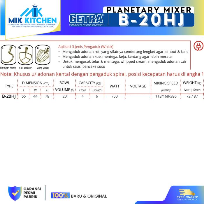 GETRA PLANETARY MIXER B-20HJ / B 20HJ / B20HJ