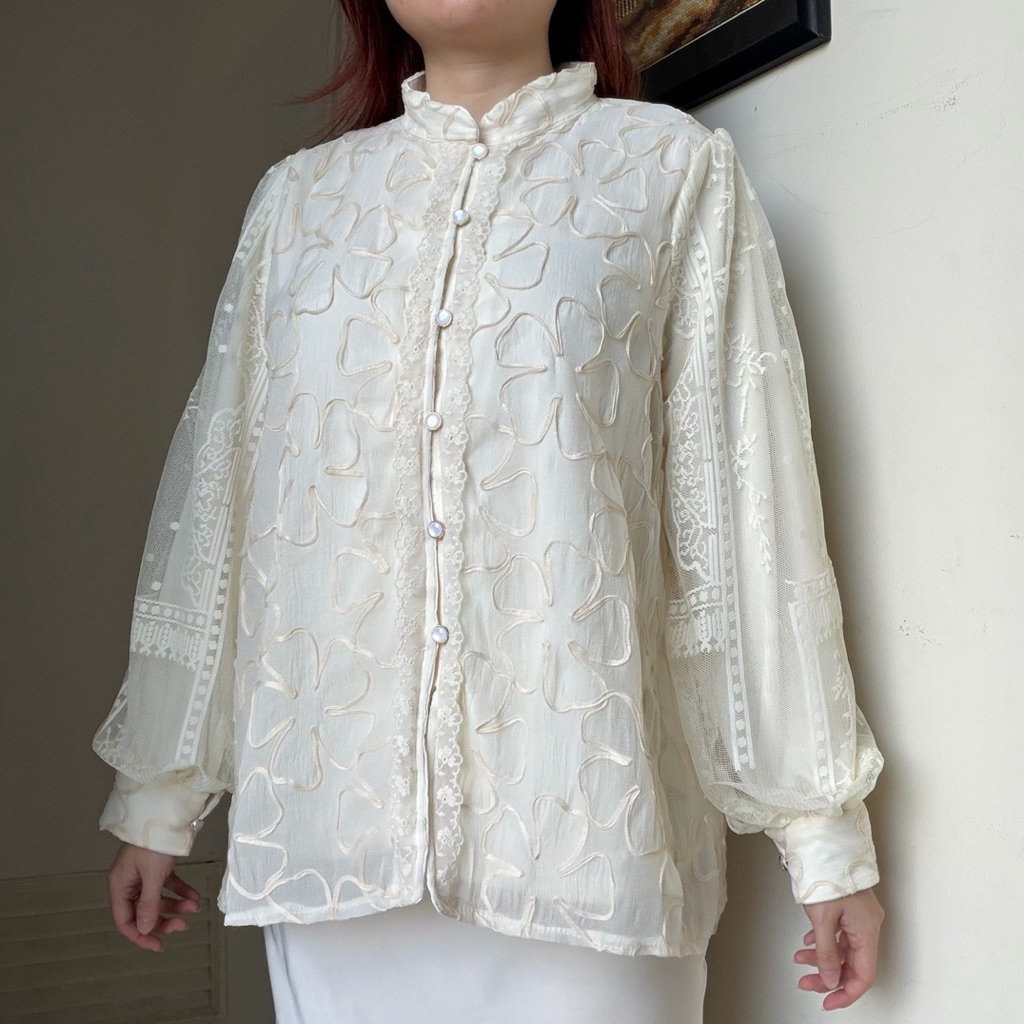 Dasha Top Atasan Kemeja Blouse Tensel Katun Renda Brokat Korean Style Baju Kondangan Wedding Lebaran Raya Wisuda Kerja B