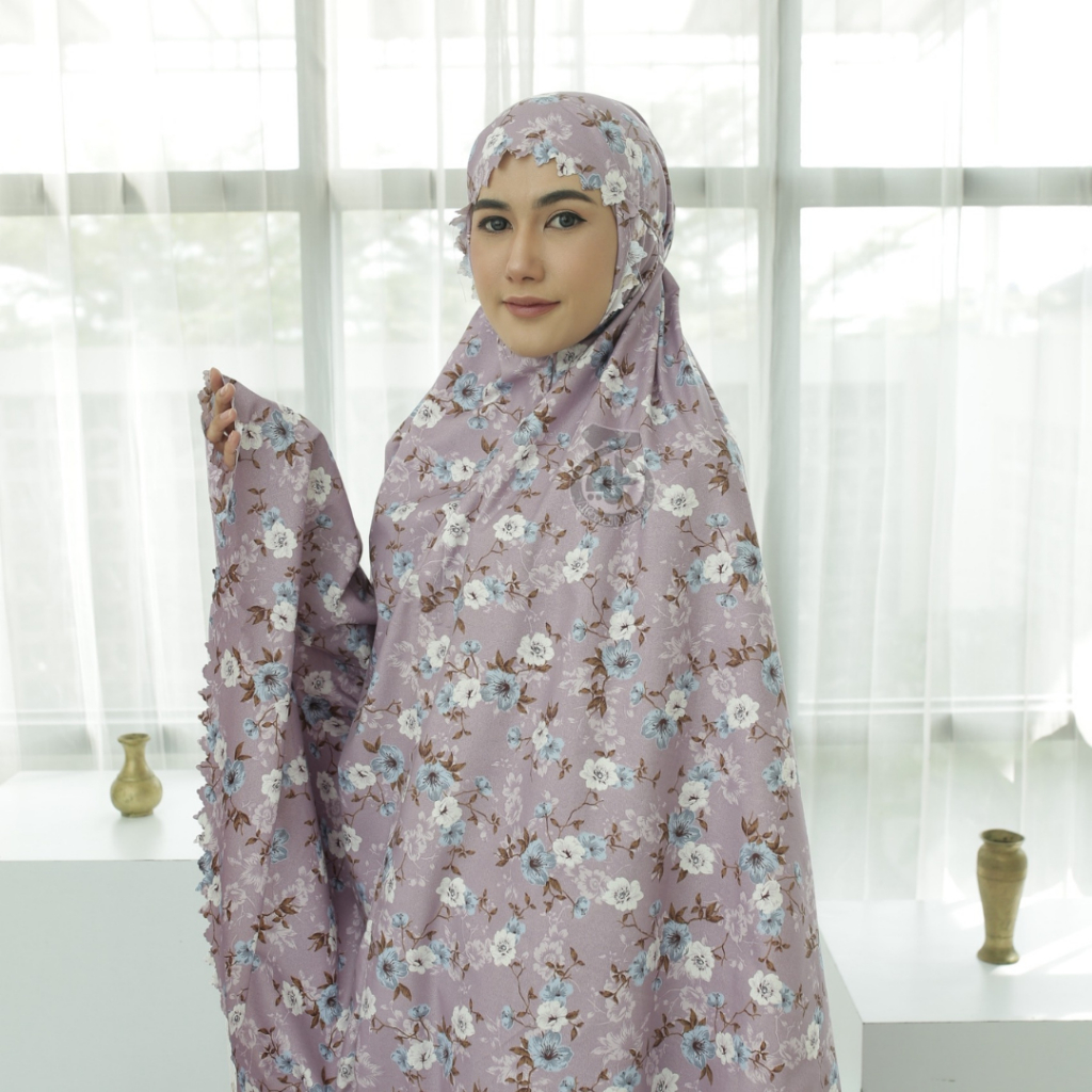 Allfarizi | Mukena Travel Mini 2in1 Aliza Katun Motif Free Tas Pouch Terbaru