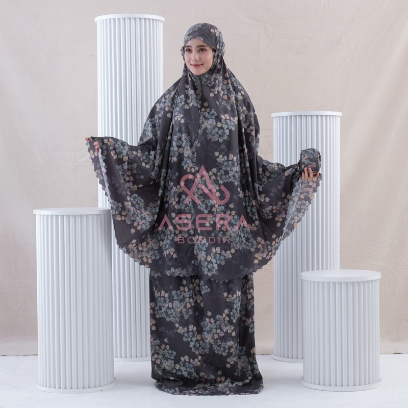 ASERA - Mukena Dewasa Mini Pouch 2 in1 Parasut Motif Premium Lasercut