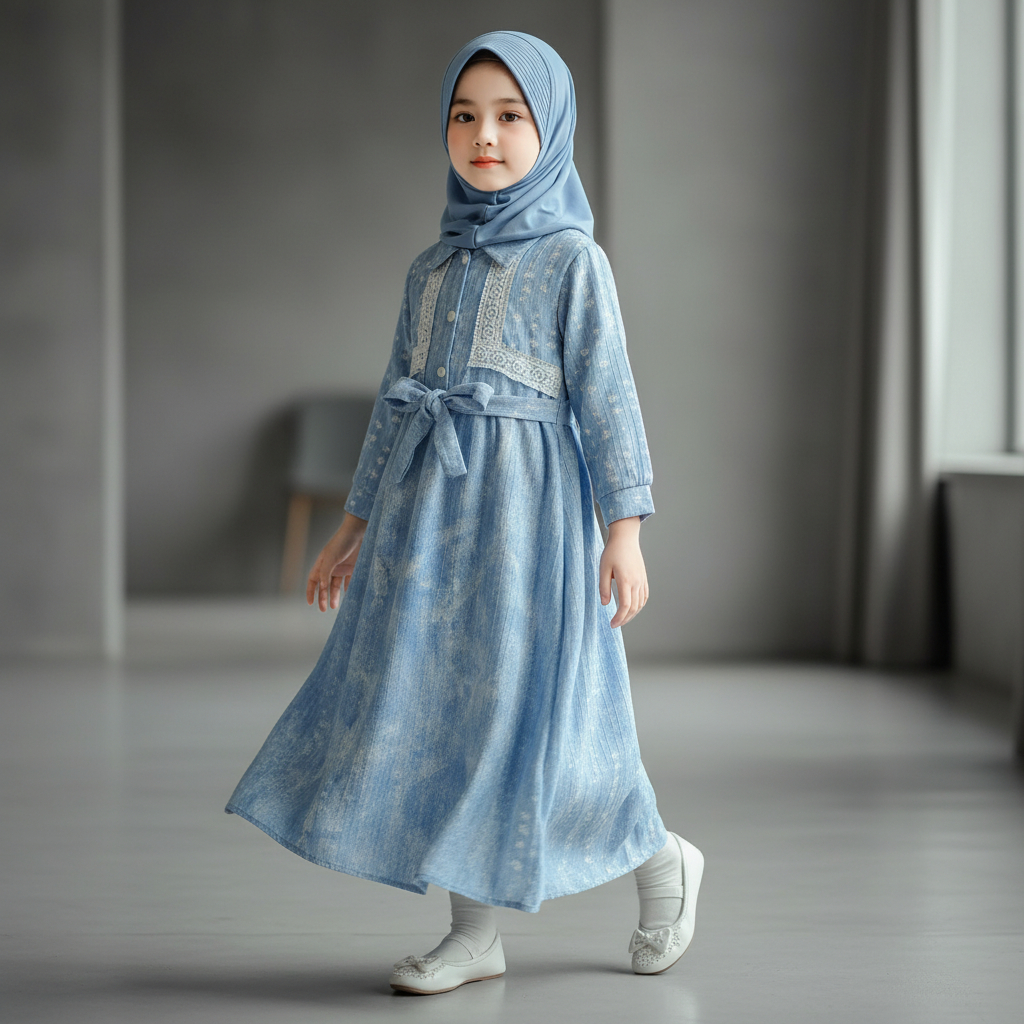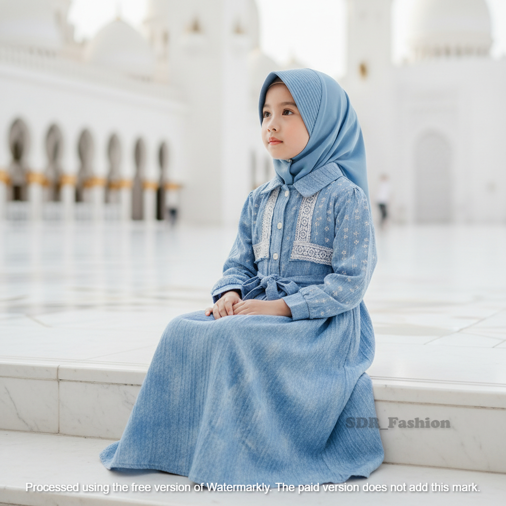 Gamis Anak Denim Renda Tampil modis & nyaman dengan dress panjang look jeans kekinian usia 1 sampai 12 tahun