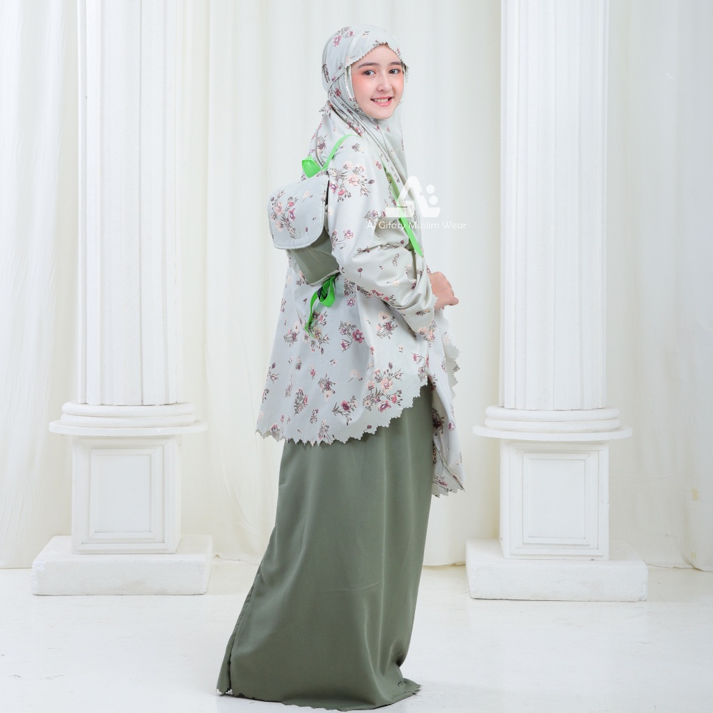 Mukena Anak 2in1 Tas Ransel Katun Motif Bunga