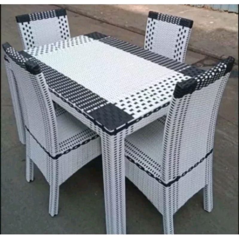 Meja Makan Rotan Sintetis 4 Kursi Kayu Mahoni
