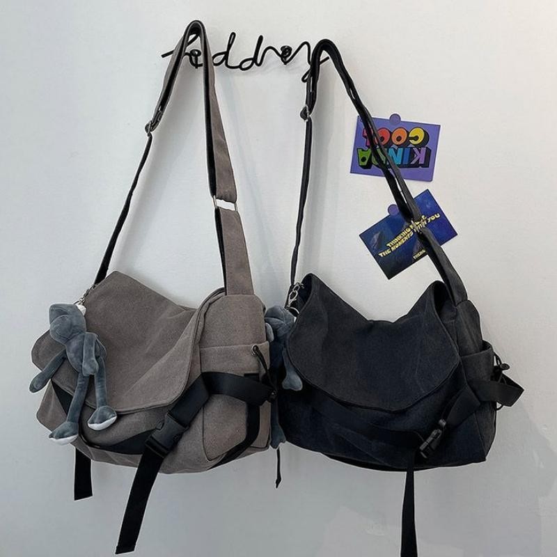 Slingbag Cowok Mahasiswa, Tas Kanvas Jepang, Universal, Klasik Minimalis, Santai, Shoulder Bag