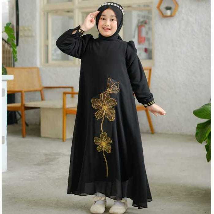 Gamis Anak Shafza Bahan Ceruty Babydoll Motif Bordir Bunga Cantik - Model Terbaru // Model Kekinian