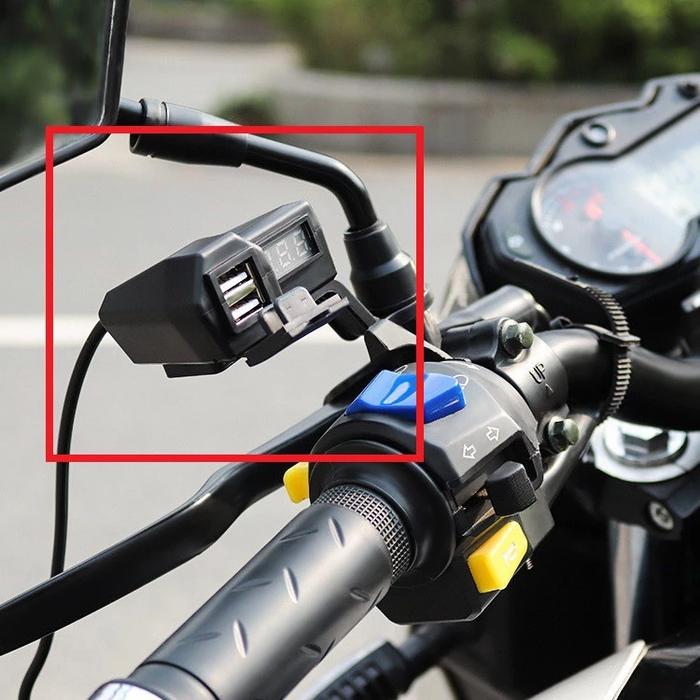 Voltmeter Digital Usb Double Charger Hp Di Stang Motor - Dual Usb Charger Hp Plus Voltmeter 12v