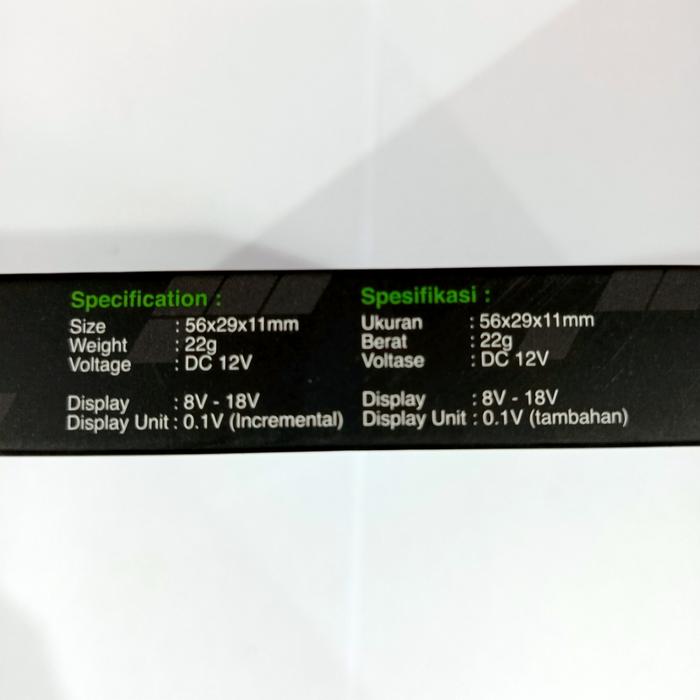 Luminos Voltmeter Digital 2in1 V2 Alat Ukur Tegangan Aki Motor Plus Jam WaterProof